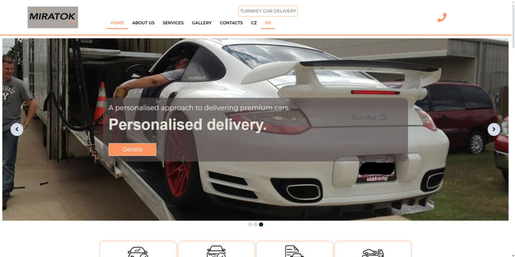 Сайт для компанії в Празі, яка займається приватними пасажирськими перевезеннями. Замовлення на простий сайт на кількох сторінках, інформує про види транспортних послуг, вартість. Дозволяє замовити потрібний транспорт через контактну форму. Фон у вигляді шосе, основні кольори жовтий і блакитний, 3 мови.